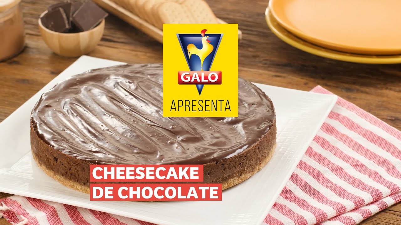Cheesecake de chocolate com massa a base de Biscoito GALO Maizena.