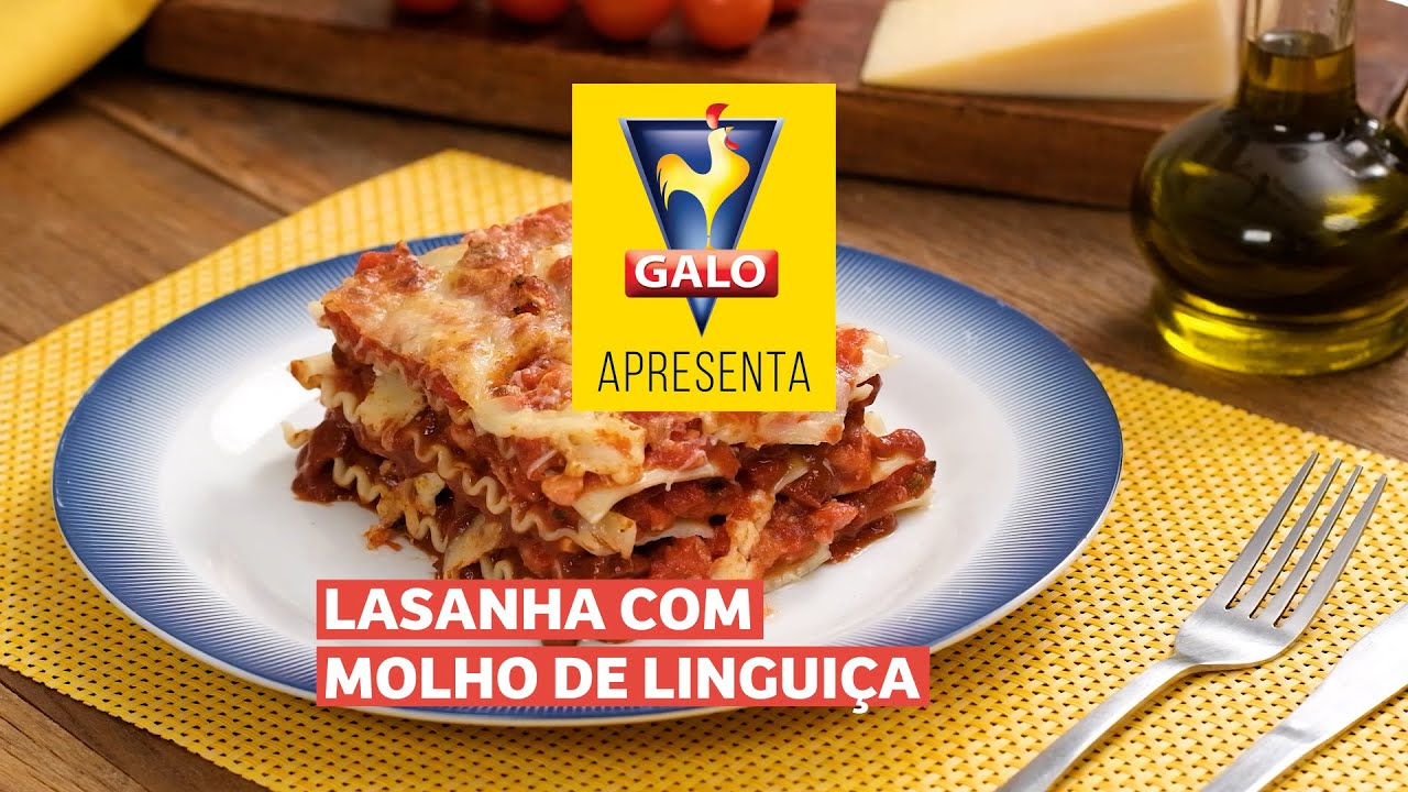 Lasanha feita com Massa Galo para Lasanha com molho de linguiça toscana. Leva também molho de tomate.