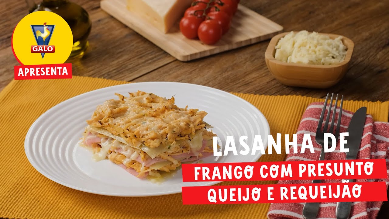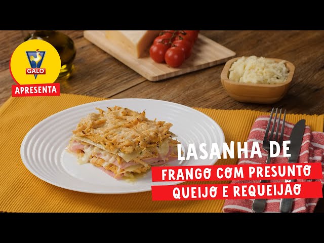 Massa para Lasanha Galo Sêmola recheada com peito de frango desfiado, presunto fatiado, muçarela e requeijão.