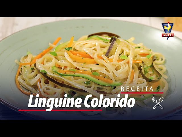 Macarrão Galo tipo Linguine com recheio de abobrinha, cenoura e berinjela.