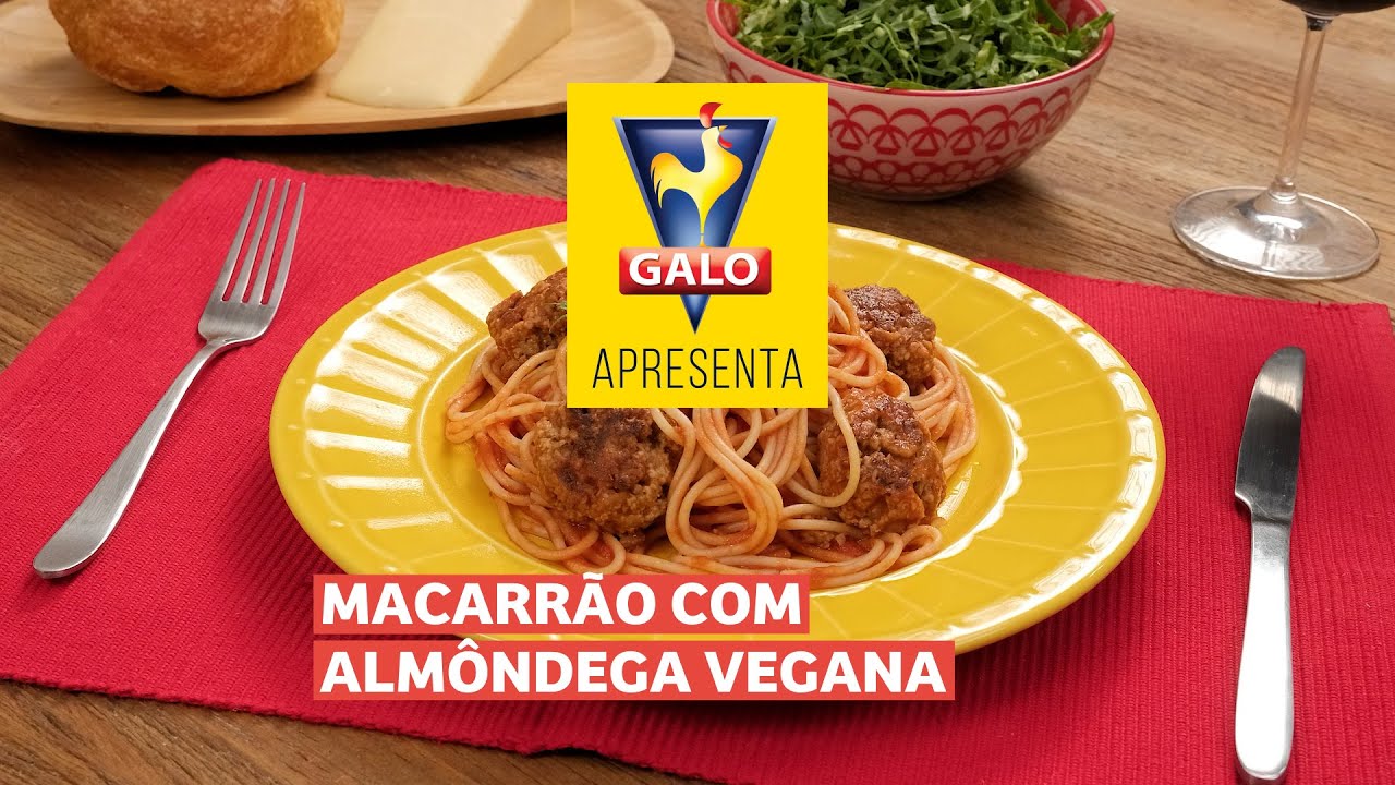 Macarrão GALO Espaguete com almôndegas veganas feita com PTS, aveia e temperos diversos.