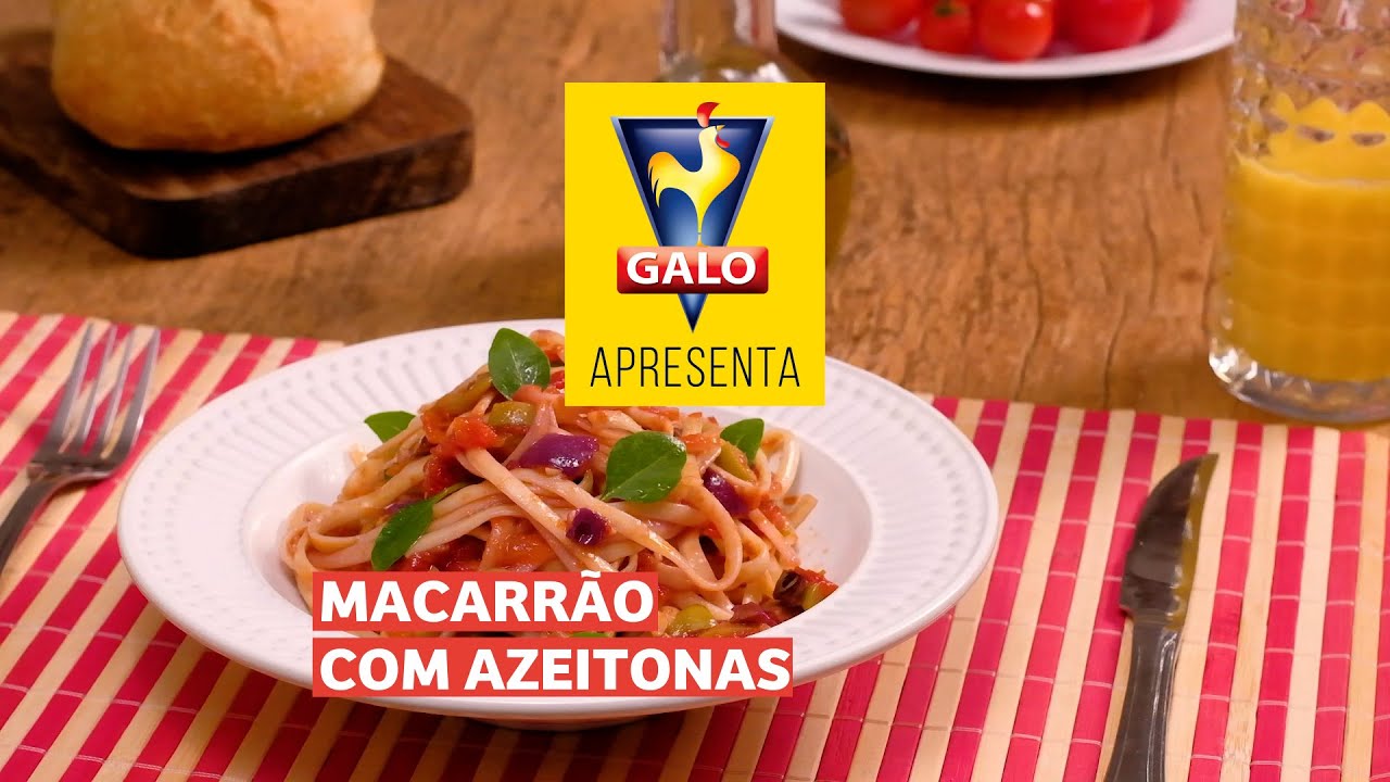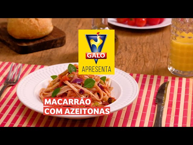 Macarrão Galo Linguini prepararo com uma combinação de azeitonas e tomate pelado picado.