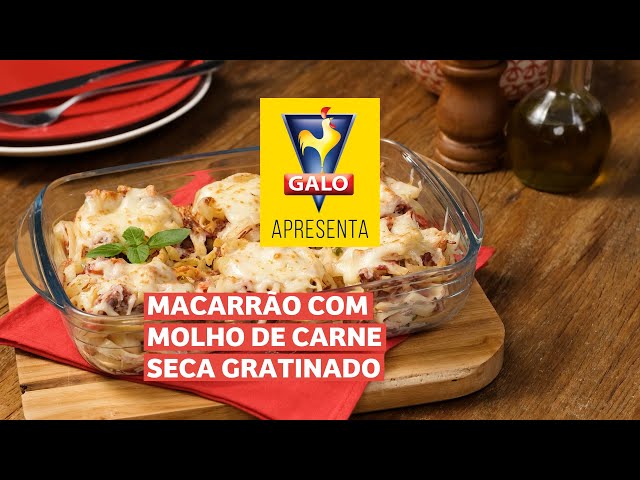 Macarrão Galo com Molho de Carne Seca Gratinado.