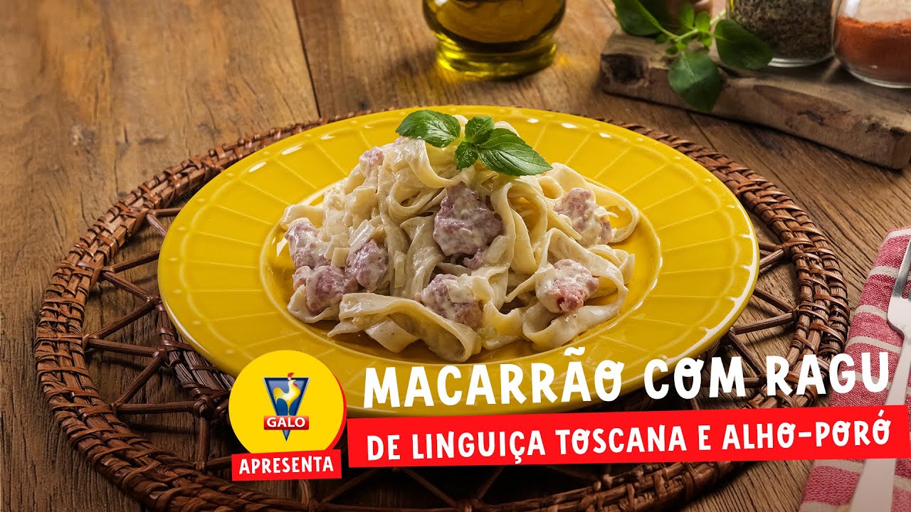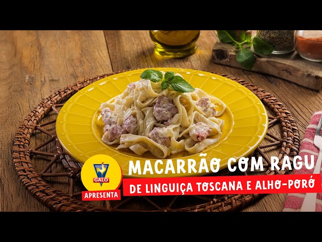 Macarrão ninho com ragu de linguiça toscana e alho-poró, cremoso e cheio de sabor, com um toque de vinho e queijo parmesão.