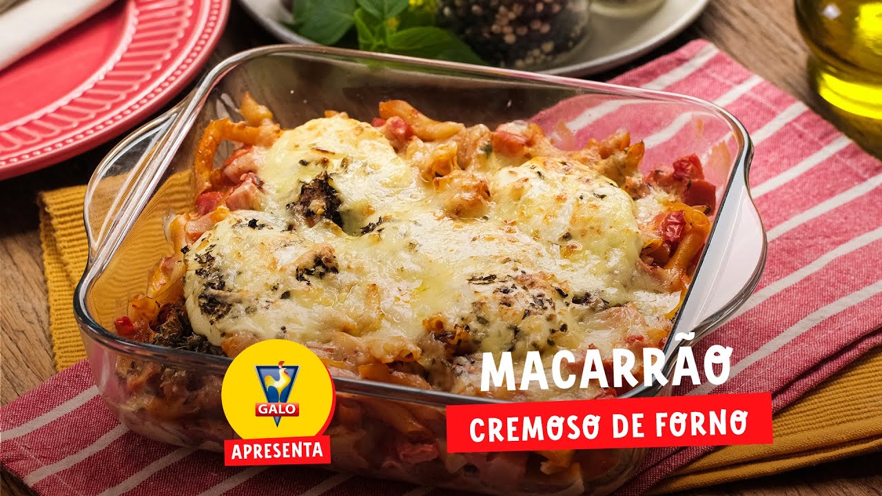 Uma receita fácil e deliciosa de macarrão com presunto, queijo e molho cremoso, assado no forno para uma textura irresistível.