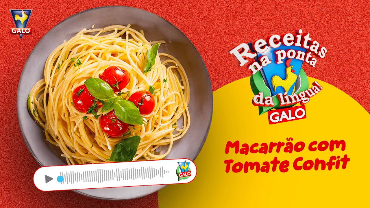 Macarrão Espaguete Galo com tomate-cereja confitado e finalizado com queijo parmesão ralado.