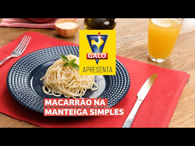 Macarrão GALO Espaguete preparado apenas na manteiga e finalizado com queijo parmesão.