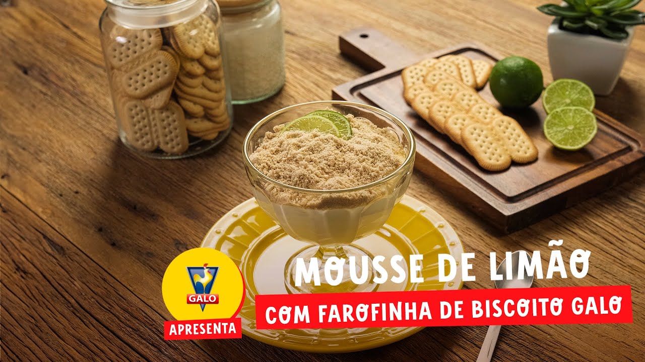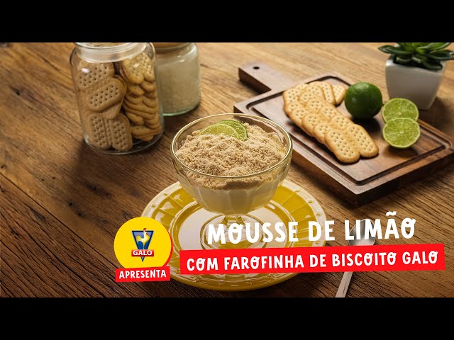 Mousse de limão refrescante, finalizado com uma crocante farofinha de Biscoito Laminado Galo Maizena triturado.