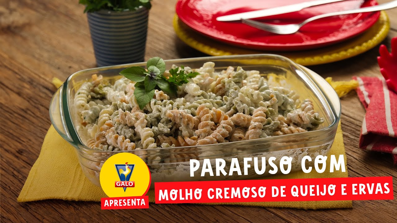 Experimente o saboroso Parafuso com Molho Cremoso de Queijo e Ervas! Em apenas 20 minutos, você cria uma combinação irresistível de queijos e ervas frescas, misturados em um molho cremoso que envolve cada espiral do macarrão tricolor.