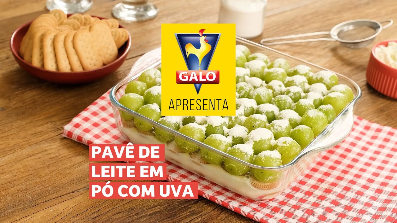 Pavê com Biscoito Galo Maizena recheado com uvas e leite em pó