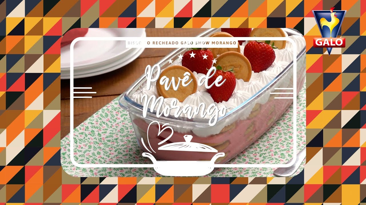 Finalize com chantilly e leve para gelar por 1 hora. Decore com morangos e Biscoitos Recheados Galo Show sabor Morango.