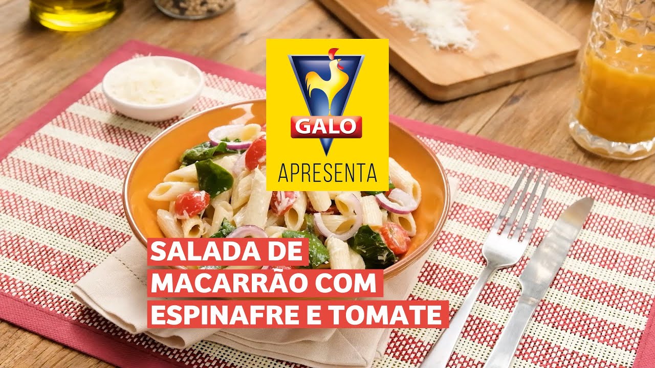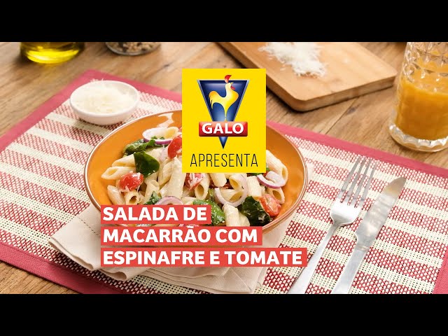 Salada preparada com Macarrão GALO Pena com espinafre e tomate-cereja.