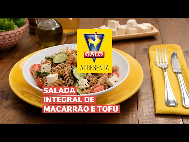 Salada de Macarrão GALO Integral Parafuso com tofu, tomate-cereja e pepino.