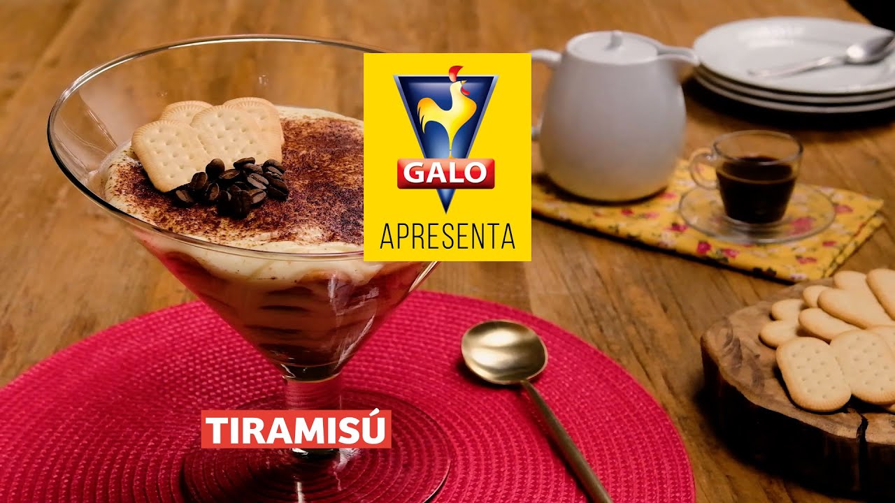 Sobremesa gelada à base de café e Biscoito Galo Maizena, com recheio leve de queijo mascarpone e cacau em pó.