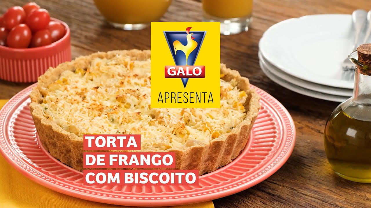Torta de frango com requeijão e milho, com massa a base de Biscoito GALO água e sal