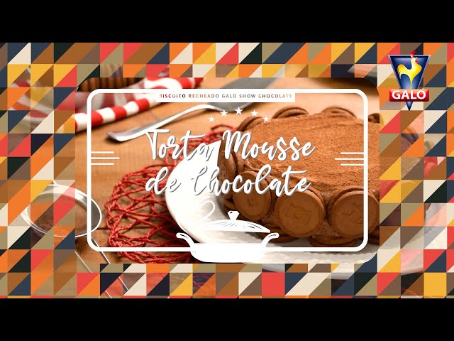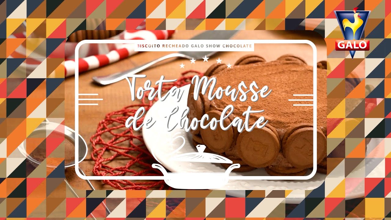Forre o fundo e a lateral de uma forma redonda com o fundo falso com os Biscoitos Recheados Galo Show sabor Chocolate. Em seguida, coloque a mousse de chocolate. Leve para gelar por 3 horas.